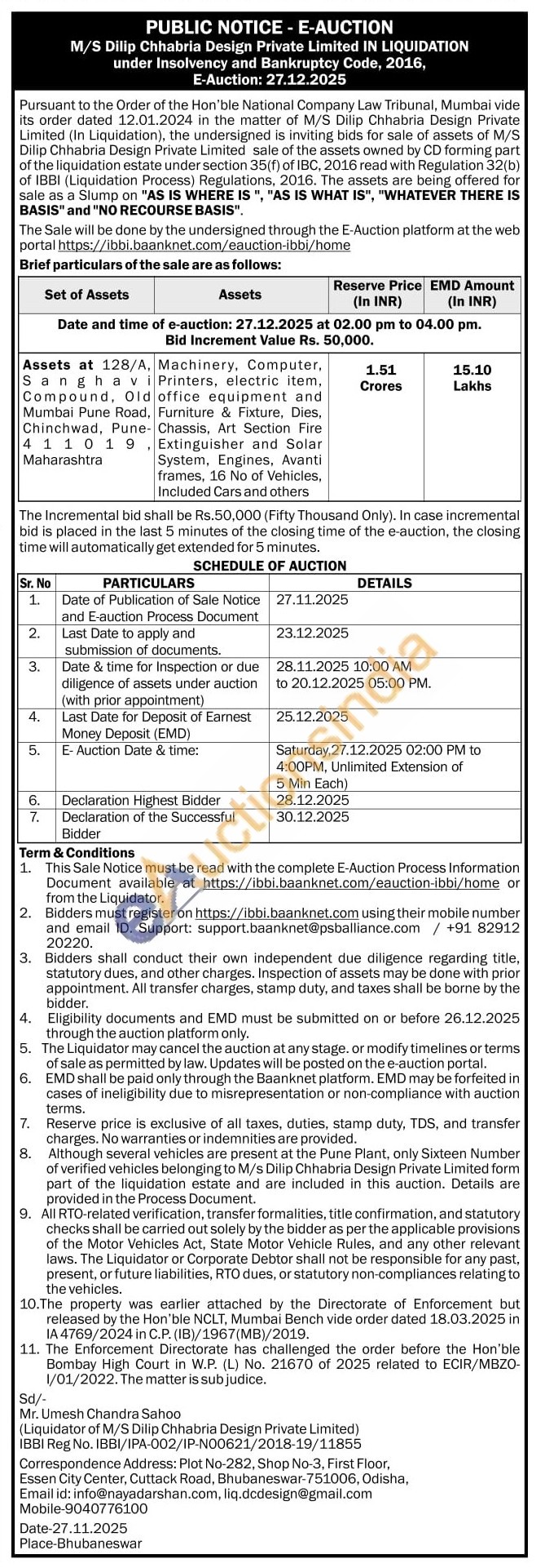 Machinery, Computer, Printers, electric item, office equipment and Furniture & Fixture, Dies, Chassis, Art Section Fire Extinguisher and Solar System, Engines, Avanti frames, 16 No of Vehicles, Included Cars and others