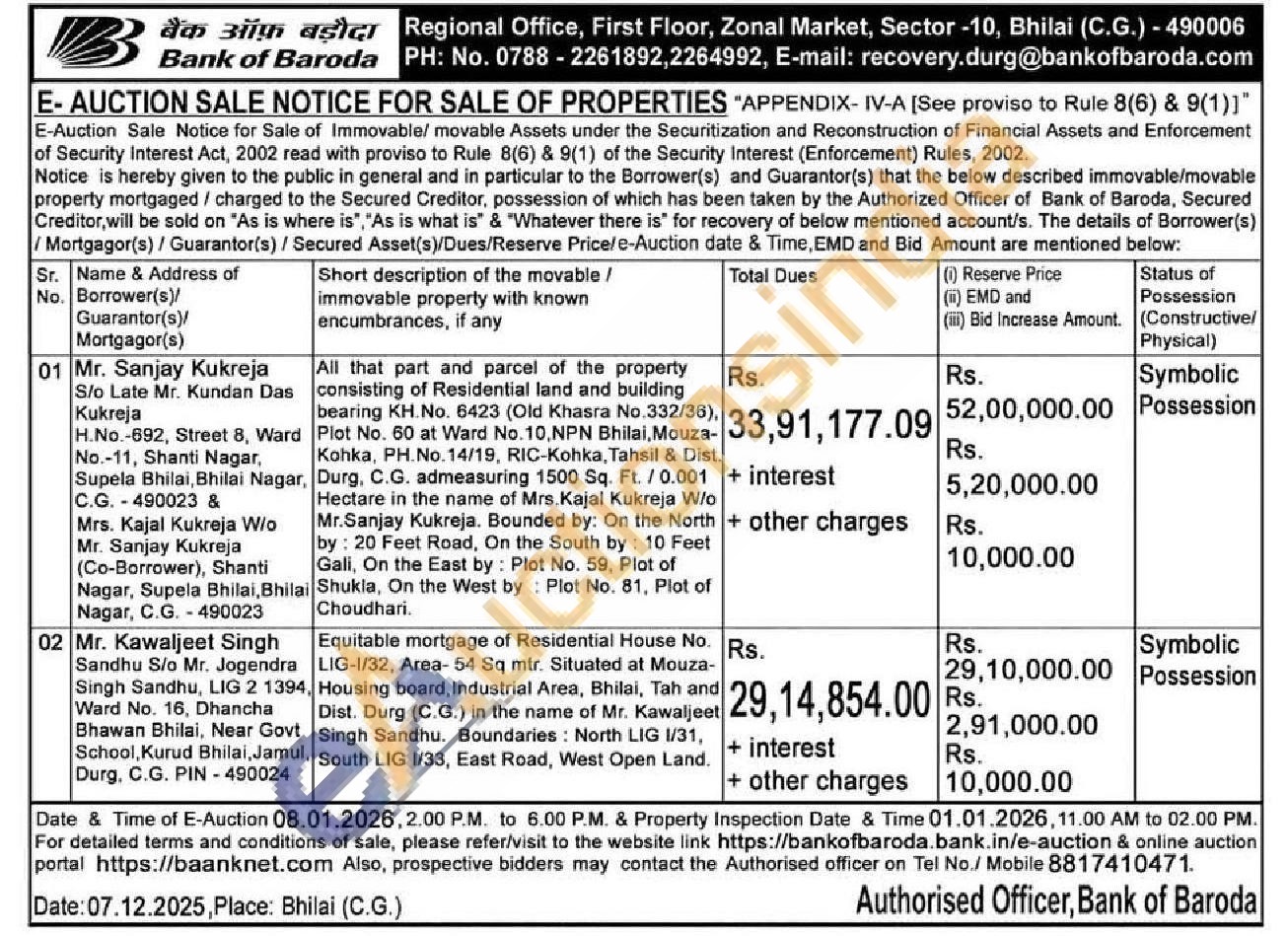 All that part and parcel of the property consisting of Residential land and building bearing KH.No. 6423 (Old Khasra No.332/36), Plot No. 60 at Ward No.10,NPN Bhilai, Mouza-Kohka, PH. No. 14/19, RIC-Kohka, Tahsil & Dist. Durg, C.G. admeasuring 1500 Sq. Ft. /0.001 Hectare in the name of Mrs. Kajal Kukreja W/o Mr.Sanjay Kukreja. Bounded by: On the North by: 20 Feet Road, On the South by: 10 Feet Gali, On the East by: Plot No. 59, Plot of Shukla, On the West by Plot No. 81, Plot of Choudhari.