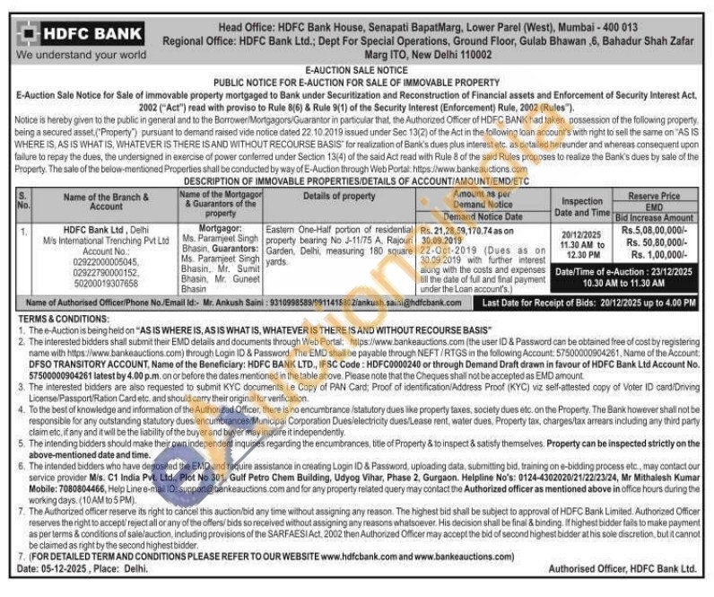 Eastern One-Half portion of residential property bearing No J-11/75 A. Rajouri Garden, Delhi, measuring 180 square yrds