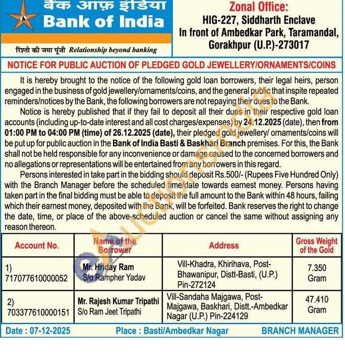 Bank of India Gold Auctions Auction in Ambedkar Nagar