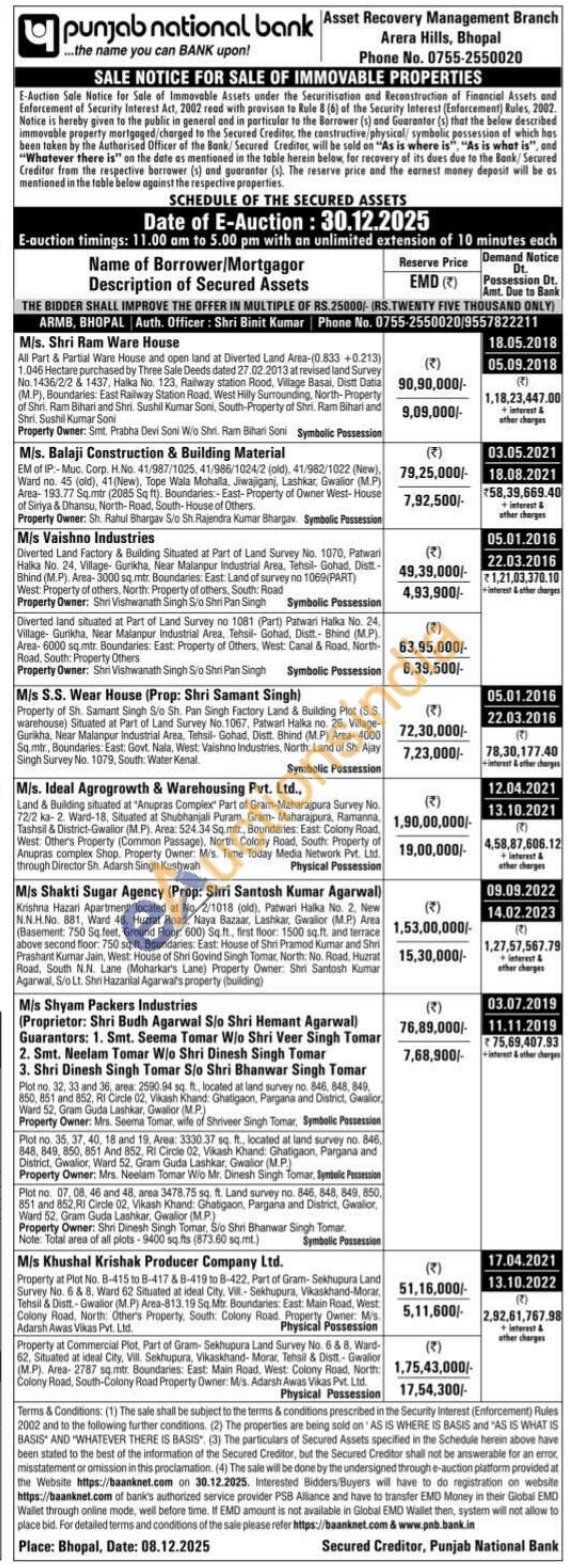 Property at Commercial Plot, Part of Gram- Sekhupura Land Survey No. 6 & 8, Ward-62, Situated at ideal City, Vill. Sekhupura, Vikaskhand-Morar, Tehsil & Distt.-Gwalior (M.P). Area-2787 sq.mtr. Boundaries: East: Main Road, West: Colony Road, North: Colony Road, South-Colony Road Property Owner: M/s. Adarsh Awas Vikas Pvt. Ltd.