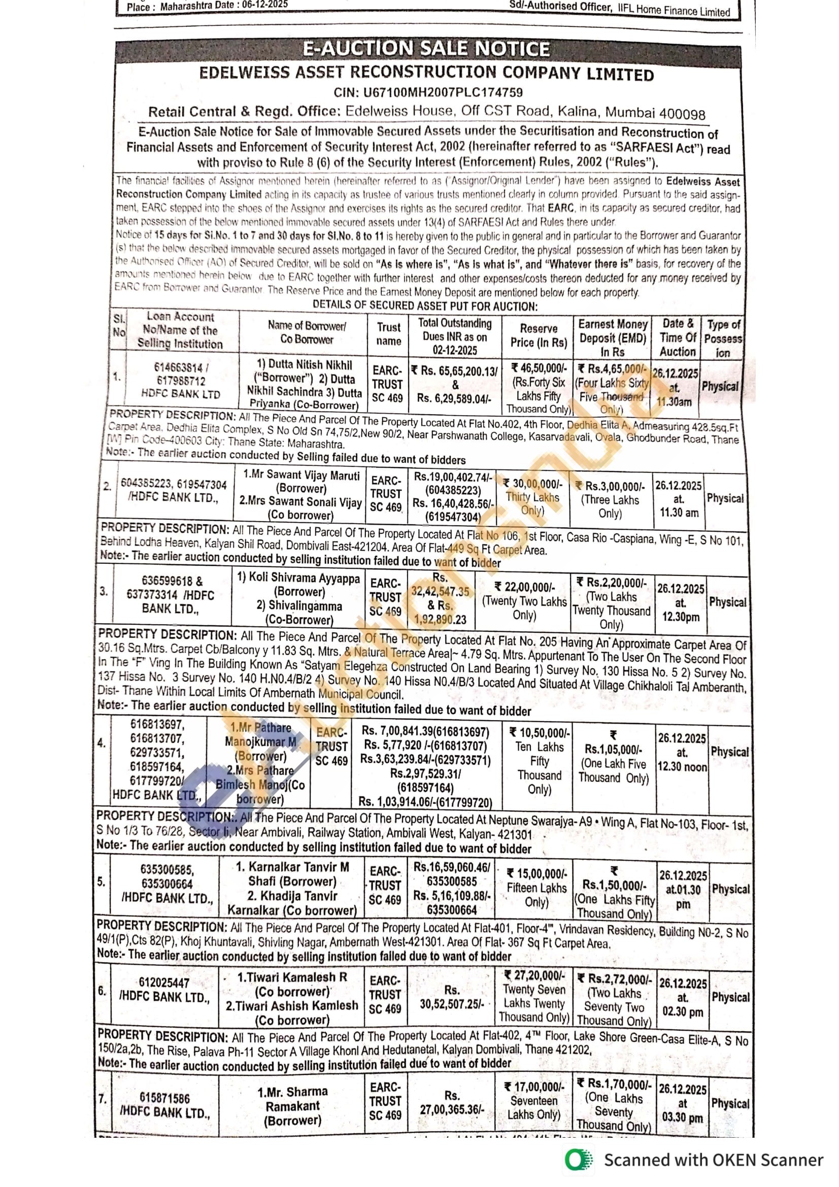 All The Piece And Parcel Of The Mortgage Property Located At Malav Vallencia, Flat-105, Floor-1, S.NO-69i1a-Pit NO-6/7, S.No 69/70/1b,28,B,C,3b, Plot-1, Cts-1147, Chinchavali Shekkin, Lawaji Gaon, Khopoli-410203. Area Of Flat- 30.19 Sq Mtrs Carpet.