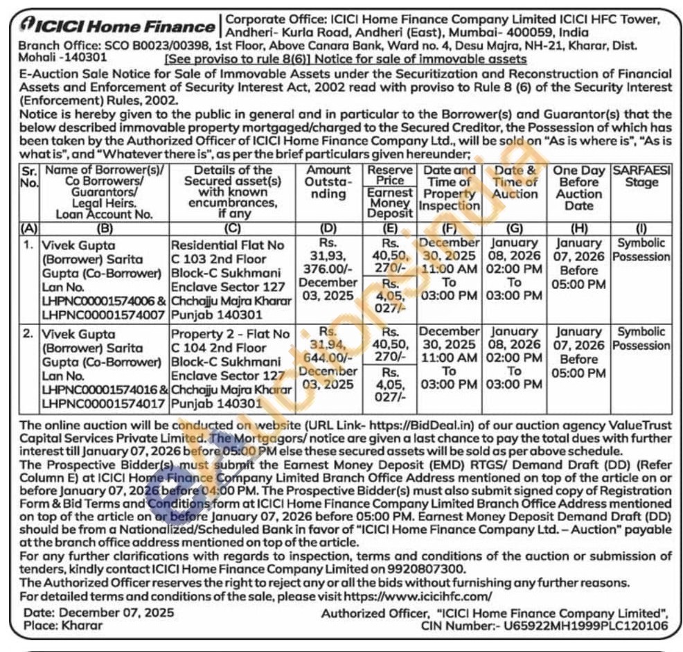 Residential Flat No C 103 2nd Floor Block-C Sukhmani Enclave Sector 127 Punjab 140301 Chchajju Majra Kharar