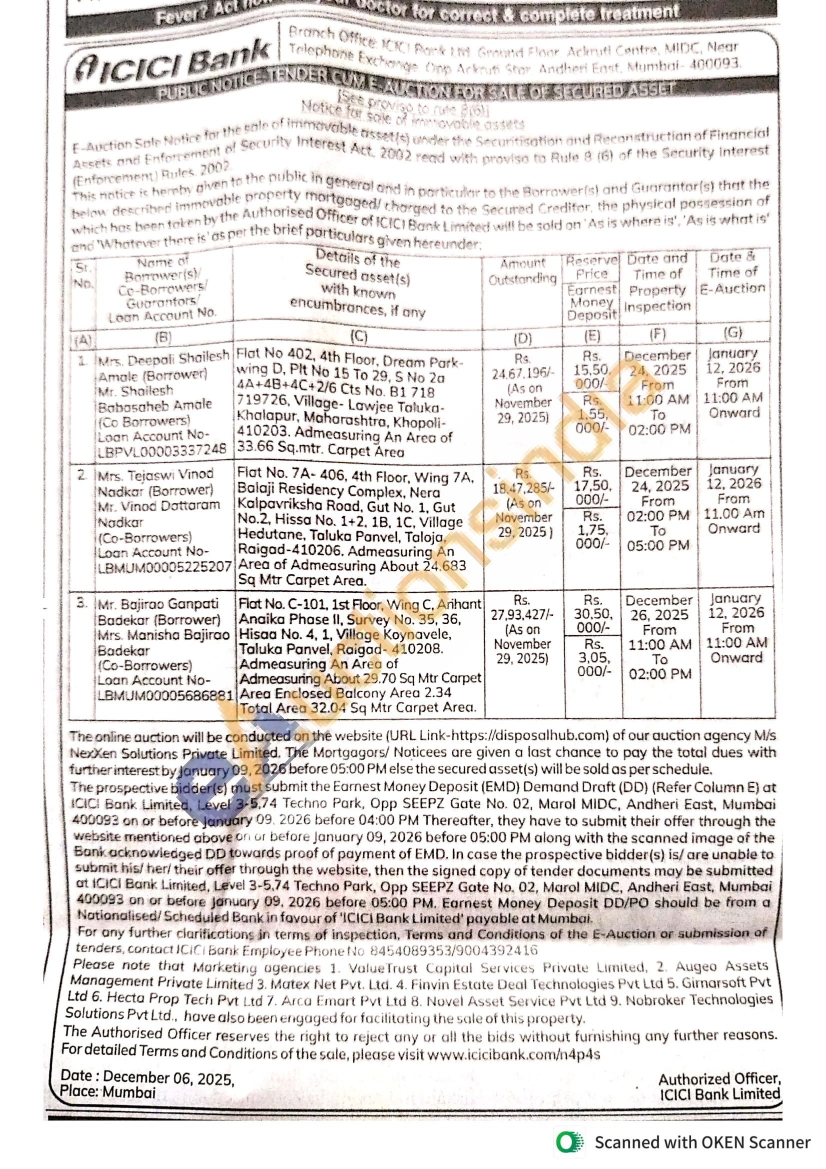 Flat No 402, 4th Floor, Dream Park-wing D. Plt No 15 Το 29, 5 Νο 20 4A+4B+4C+2/6 Cts No. 81 718 719726. Village- Lawjee Taluka-Khalapur, Maharashtra, Khopoli-410203. Admeasuring An Area of 33.66 Sq.mtr. Carpet Area