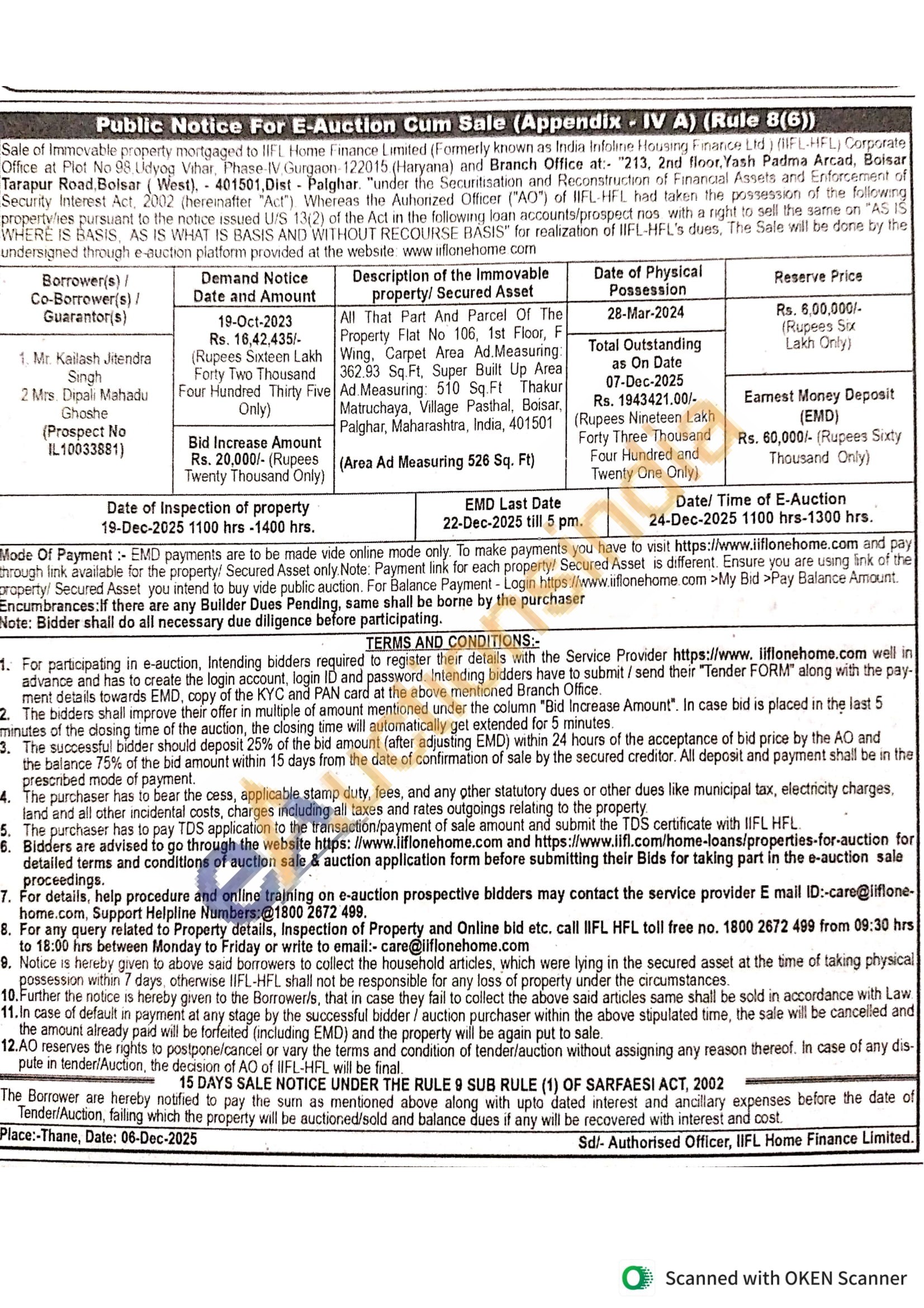 All That Part And Parcel Of The Property Flat No 106, 1st Floor, F Wing, Carpet Area Ad Measuring: 362.93 Sq Ft. Super Built Up Area Ad Measuring: 510 Sq.Ft Thakur Matruchaya, Village Pasthal, Boisar, Palghar, Maharashtra, India, 401501 (Area Ad Measuring 526 Sq. Ft)