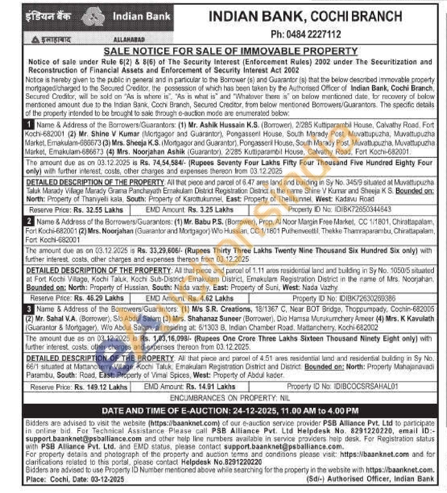 DETAILED DESCRIPTION OF THE PROPERTY. All that piece and parcel of 6.47 ares land and building in Sy No. 345/9 situated at Muvattupuzha Taluk Marady Village Marady Grama Panchayath Ernakulam District Registration District in the name Shine V Kumer and Sheeja K S. Bounded on: North: Property of Thaniyelli kala, South: Property of Karottukunnel, East: Property of Thellkunnel, West: Kadavu Road