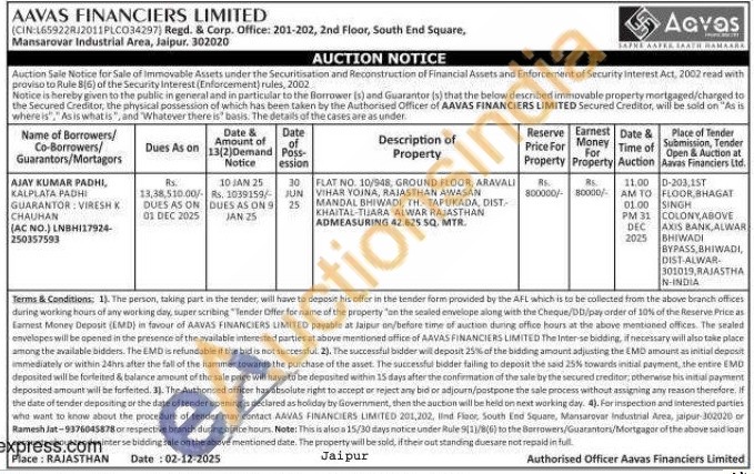 FLAT NO. 10/948, GROUND FLOOR, ARAVALI VIHAR YOINA, RAJASTHAN AWASAN MANDAL BHIWADI, TH TAPUKADA, DIST KHAITAL-TIARA ALWAR RAJASTHAN ADMEASURING 42.625 SQ. MTR.