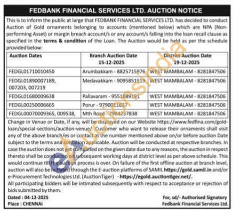 Fedbank Financial Services Ltd Gold Auctions Auction in Chennai