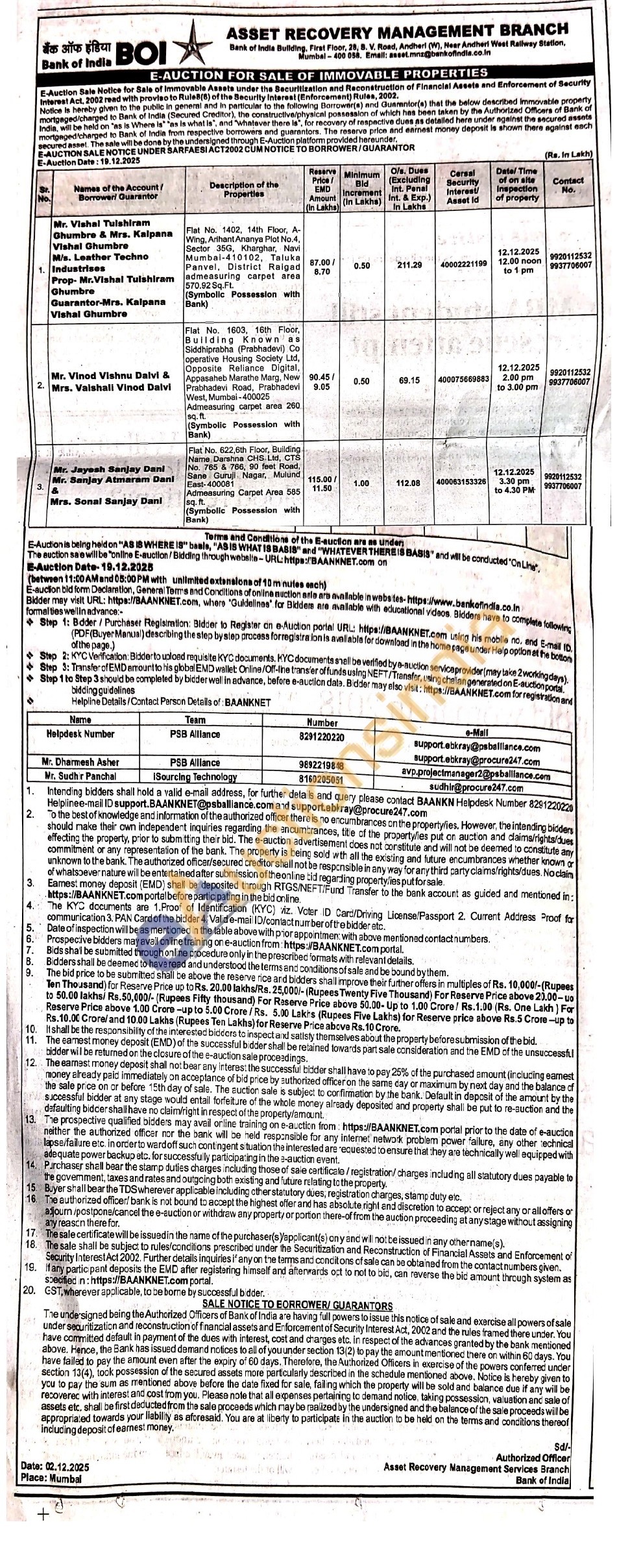 Flat No. 1603, 16th Floor, Building Known as Siddhiprabha (Prabhadevi) Co operative Housing Society Ltd, Opposite Reliance Digital, Appasaheb Marathe Marg, New Prabhadevi Road, Prabhadevi West, Mumbai-400025 Admeasuring carpet area 260 sq.ft. (Symbolic Possession with Bank)