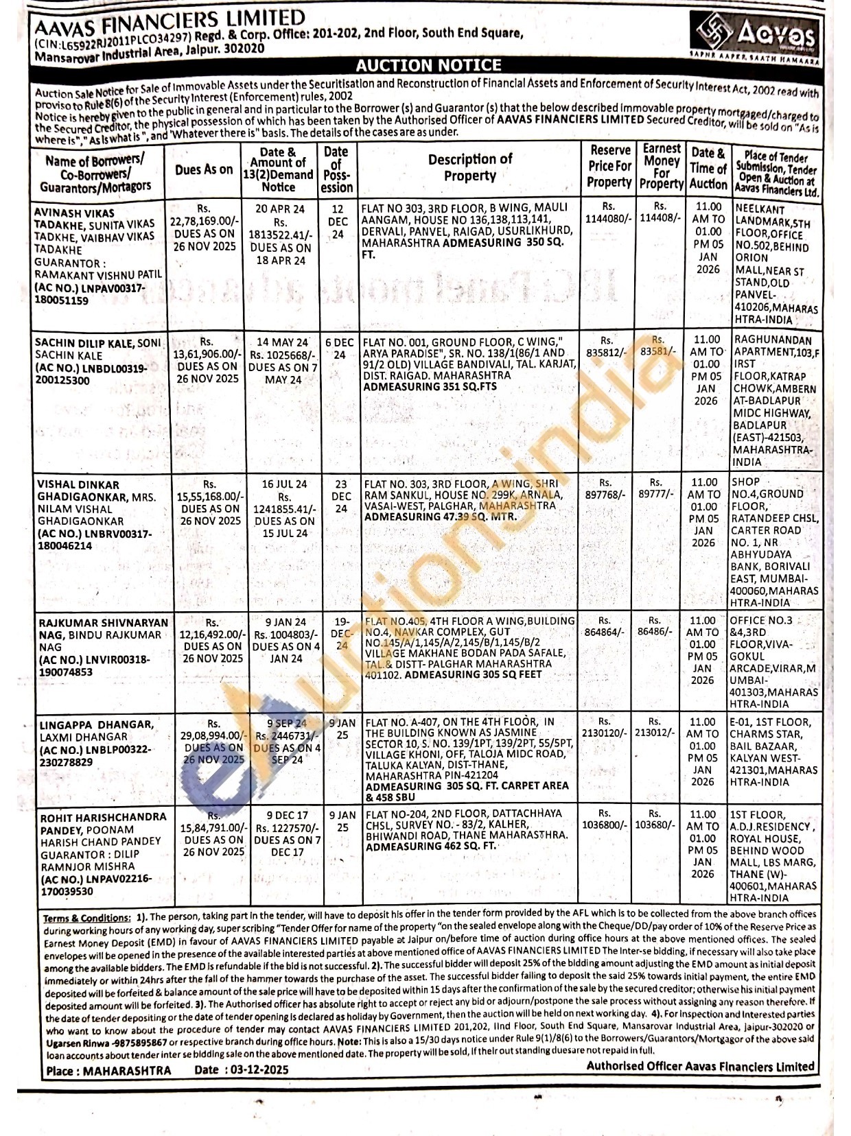 FLAT NO.405, 4TH FLOOR A WING, BUILDING NO.4, NAVKAR COMPLEX, GUT ΝΟ.145/Α/1,145/Α/2,145/Β/1,145/8/2 VILLAGE MAKHANE BODAN PADA SAFALE, TAL. & DISTT-PALGHAR MAHARASHTRA 401102. ADMEASURING 305 SQ FEET