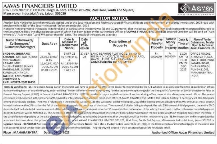 LAND BEARING PLOT NO 22, SR NO 43 HISSA NO. 1-2/2/1/23 VILLAGE KHARADI HAVELI, PUNE, MAHARASHTRA ADMEASURING 209 SQ. MTRS