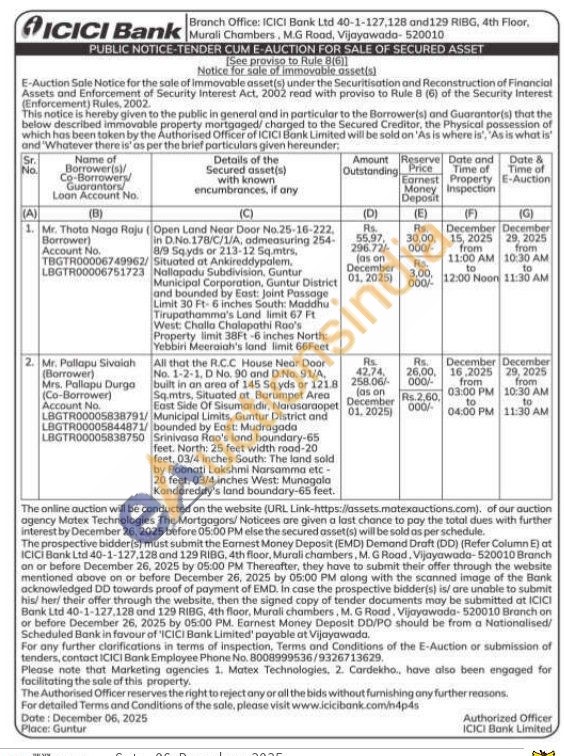 All that the R.C.C. House Near Door No. 1-2-1, D No. 90 and D.No. 91/A, built in an area of 145 Sqyds or 121.8 Sq.mtrs. Situated at Barumpet Area Municipal Limits, Guntur District and bounded by East: Mudragada Srinivasa Rao's land boundary-65 feet. North: 25 feet width road-20 feet, 03/4 inches South: The land sold by Poonati Lakshmi Narsamma etc-20 feet, 03/4 inches West: Munagala Kondareddy's land boundary-65 feet