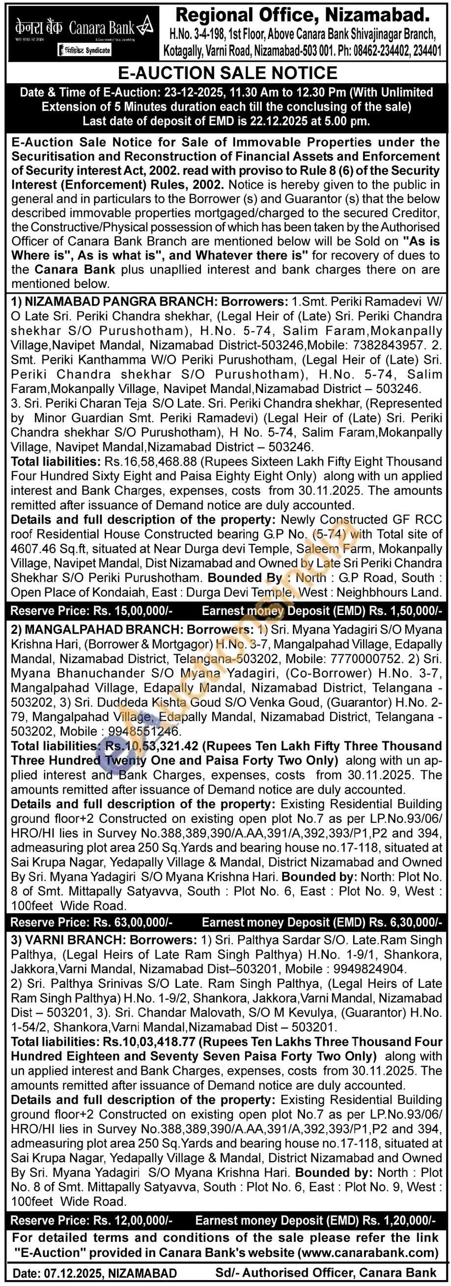 Existing Residential Building ground floor+2 Constructed on existing open plot No.7 as per LP.No.93/06/HRO/HI lies in Survey No.388,389,390/Α.ΑΑ,391/Α,392,393/P1,P2 and 394, admeasuring plot area 250 Sq. Yards and bearing house no. 17-118, situated at Sai Krupa Nagar, Yedapally Village & Mandal, District Nizamabad and Owned By Sri. Myana Yadagiri S/O Myana Krishna Hari. Bounded by: North: Plot No. 8 of Smt. Mittapally Satyavva, South Plot No. 6, East: Plot No. 9, West: 100feet Wide Road.