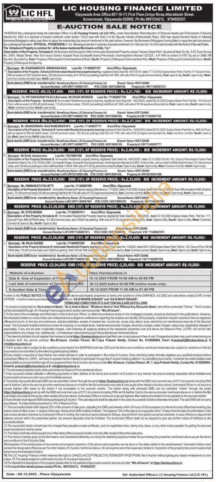 7) Registered Sale Deed No 113/2020, dated 09.01.2020 Anjana Green Park, Flat No: 103, Ground Floor, 861s Plinth area. 115 stt Common area, and 100sft Car parking, Total 1076 st. With uds of 46.37 sqydsand bounded by East: Common corridor, South: Open to sky, West: Open to sky, North: Open to sky