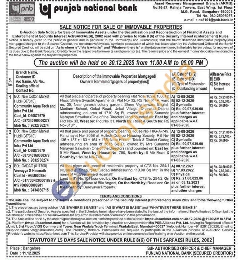 2) All that piece and parcel of residential property at CTS No. 254/1 situated at Shapurpet, Gadag admeasuring 110.00 Sq Mtr. in the name of Mr. Veerayya S Hosmath: Land in SY No. 101 bounded by: On the East by: CTS No 254/2, On the West by: House of Bile Angadi, On the North by: Road and On the South by: Bereyavar Property