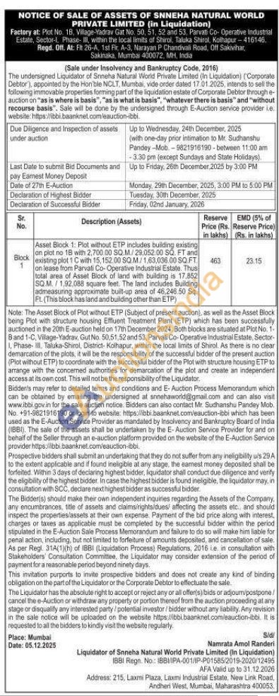 Asset Block 1: Plot without ETP includes building existing an plot no 18 with 2,700.00 SQ.M./29.052.00 SQ. FT and existing plot 1 C with 15,152.00 SQ.M./1.63.036.00 SQ.FT on lease from Parvati Co-Operative Industrial Estate. Thus total area of Asset Block of land with building is 17.852 SQ.M./1,92,088 square feet. The land includes Building admeasuing approximate built-up area of 46,246.50 Sq. FL. (This block has land and building other than ETP)