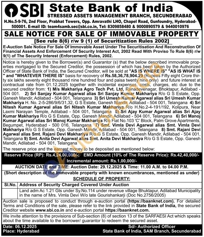 Contact E-mail ID: team4samb.sec@sbi.co.in, Tel: 8309858480 & 9000890579 & 9440010976