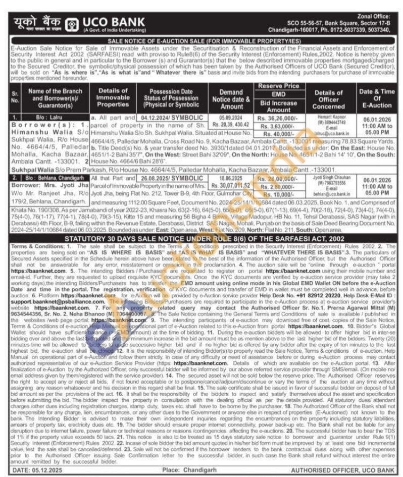 property Walia, Situated at House No. Sukhpal Walia, Rio House 4664/4/5, Palledar Mohalla, Cross Road No. 9, Kacha Bazaar, Ambala Cantt-133001 measuring 78.83 Square Yards. No. 4664/4/5