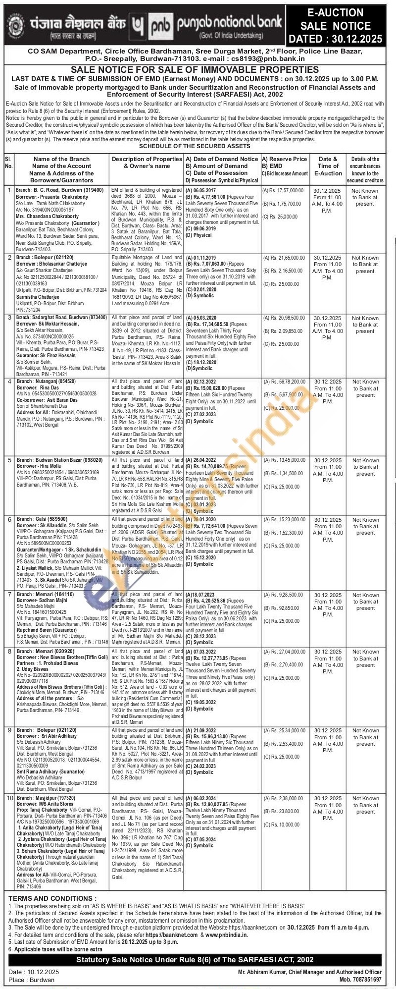 All that piece and parcel of land and building situated at Dist: Purba Bardhaman, P.S-Memari, Mouza-Memari, within Memari Municipality, JL No. 152, LR Kh No. 278/1 and 1187/4. RS & LR Plot No. 1583 & 1587 Holding No. 512, Area of land 0.03 acre or 445.45 sq. mtr more or less with Il storey building (Residential Cum Commercial) as per gift deed no. 5537 & 5539 of year 1983 in the name of Uday Biswas and Prohalad Biswas respectively registered at D.S.R. Memari