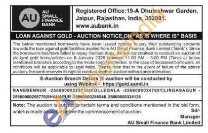 AU Small Finance Bank Gold Auctions Auction in Jaipur