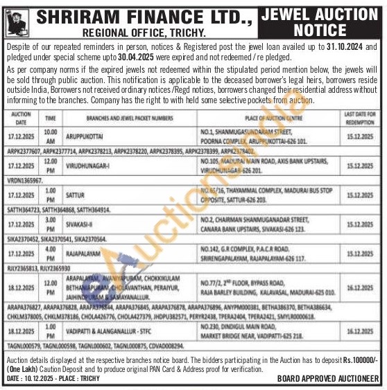 Shriram Finance Ltd Gold Auctions Auction in Virudhunagar