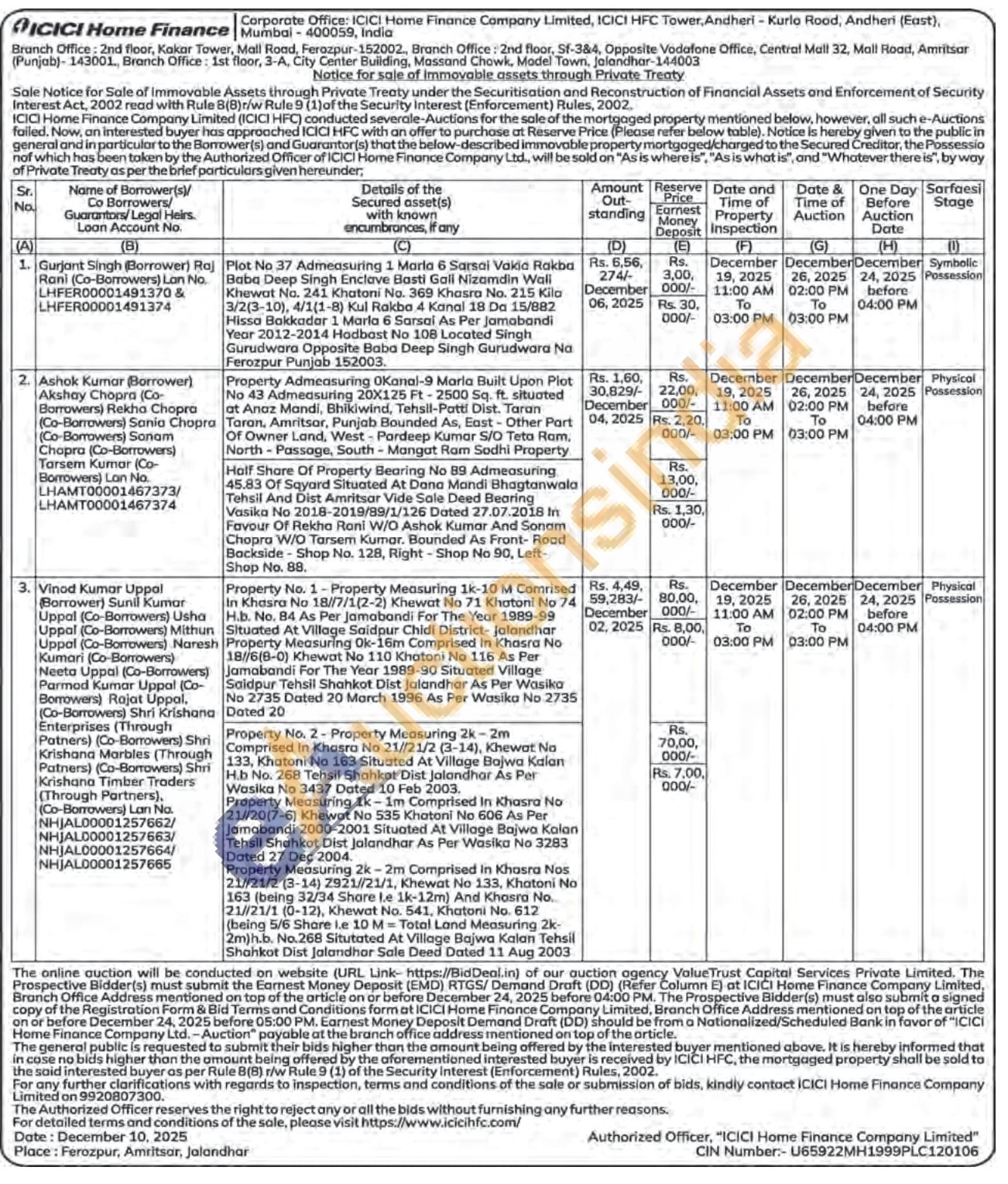 Plot No 37 Admeasuring 1 Maria 6 Sarsai Vakio Rakba Baba Deep Singh Enclave Basti Gali Nizamdin Wall Khewat No. 241. Khatoni No. 369 Khosro No. 215 Kila 3/2(3-10), 4/1(1-8) Kul Rakba 4 Kanal 18 Da 15/882 Hissa Bakkadar 1 Marla 6 Sarsal As Per Jamabandi Year 2012-2014 Hodbast No 108 Located Singh Gurudwara Opposite Baba Deep Singh Gurudwara Na Ferozpur Punjab 152003.