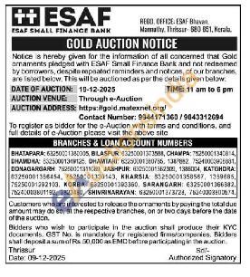 ESAF SMALL FINANCE BANK Gold Auctions Auction in Thrissur