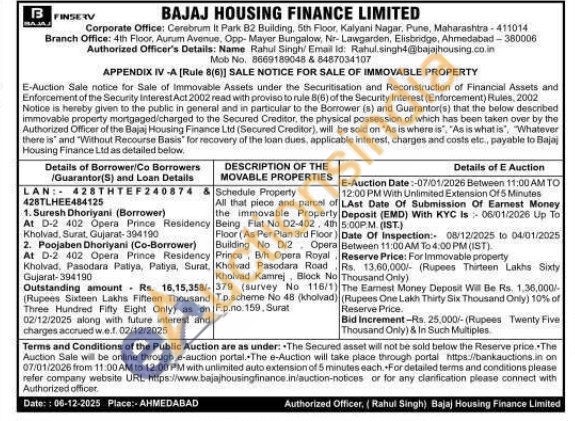 Schedule Property All that piece and parcel of the immovable Property Being Flat No D2-402, 4t Floor (As Per Plan 3rd Floor) Building No D/2 Opera Prince Bih Opera Royal Kholvad Pasodara Road Kholvad Kamrej, Block No 379 (survey No 116/1) Tip scheme No 48 (kholvad) Fp.no.159, Surat