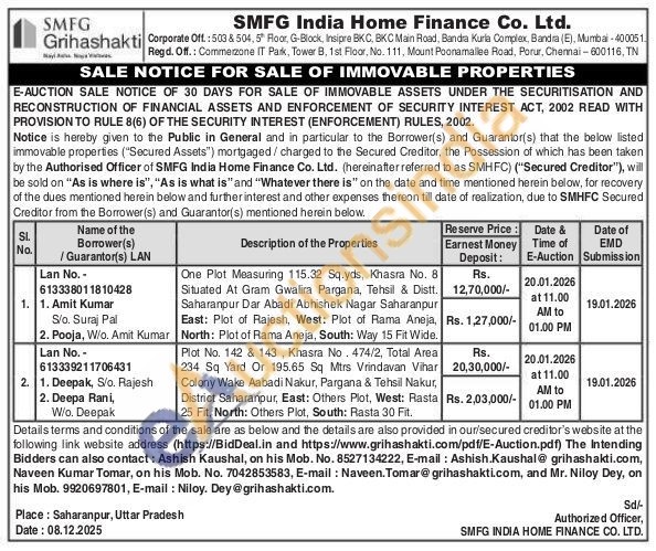 One Plot Measuring 115.32 Sq.yds, Khasra No. 8 Situated At Gram Gwalira Pargana, Tehsil & Distt. Saharanpur Dar Abadi Abhishek Nagar Saharanpur East: Plot of Rajesh, West: Plot of Rama Aneja, North: Plot of Rama Aneja, South: Way 15 Fit Wide