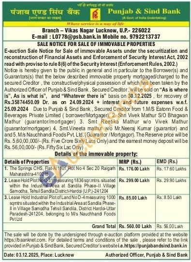 Lease Hold Industrial Plot of Land No D-4 measuring 1000 sqmirs situated within the Industrial Area at Sandila Phase-II in Village Samodha Tehsil Sandila, District Hardoi-Uttar Paradesh-241204, belonging to M's Nauchhand Foods Pvt Ltd