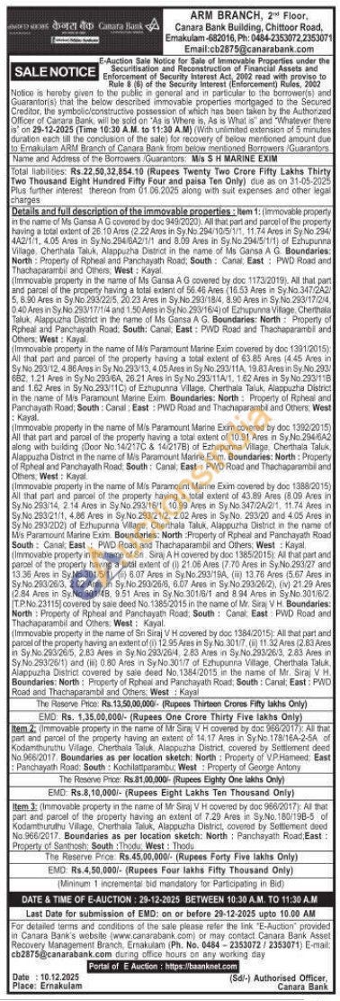 Item 2: (Immovable property in the name of Mr Siraj VH covered by doc 966/2017): All that part and parcel of the property having an extent of 14,17 Ares in Sy.No 178/16A-2-5A of Kodamthuruthu Village, Cherthala Taluk, Alappuzha District, covered by Settlement deed No. 966/2017. Boundaries as per location sketch: North: Property of VP.Hameed: East Panchayath Road: South Kochilattperambu: West: Property of George Antony