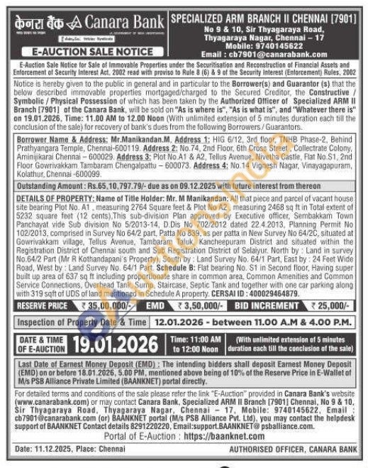All that piece and parcel of vacant house site bearing Plot No. A1, measuring 2764 Square feet & Plot No A2, measuring 2468 sq ft in Total extent of 5232 square feet (12 cents), This sub-division Plan approved by Executive officer, Sembakkam Town Panchayat vide Sub division No 5/2013-14, D.Dis No 702/2012 dated 22.4.2013, Planning Permit No 102/2013, comprised in Survey No 64/2 part, Patta No 839, as per patta in New Survey No 64/20, situated at Gowrivakkam village, Tellus Avenue, Tambaram Taluk, Kancheepuram District and situated within the Registration District of Chennai south and Sub Registration District of Selaiyur. North by Land in survey No.64/2 Part (Mr R Kothandapani's Property), South by: Land Survey No. 64/1 Part, East by: 24 Feet Wide Road, West by Land Survey No. 64/1 Part. Schedule B: Flat bearing No. S1 in Second floor, Having super built up area of 637 sq ft including proportionate share in common area, Common Amenities and Common Service Connections, Overhead Tank, Sump, Staircase, Septic Tank and together with one car parking along with 319 sqft of UDS of land mentioned in Schedule A property, CERSAI ID: 400029464879.