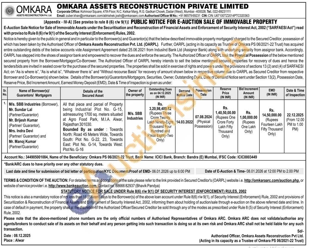 All that piece and parcel of Property being Industrial Plot No. G-15, admeasuring 1700 sq. meters situated at Agro Food Park, M.I.A. Alwar, Rajasthan 301030