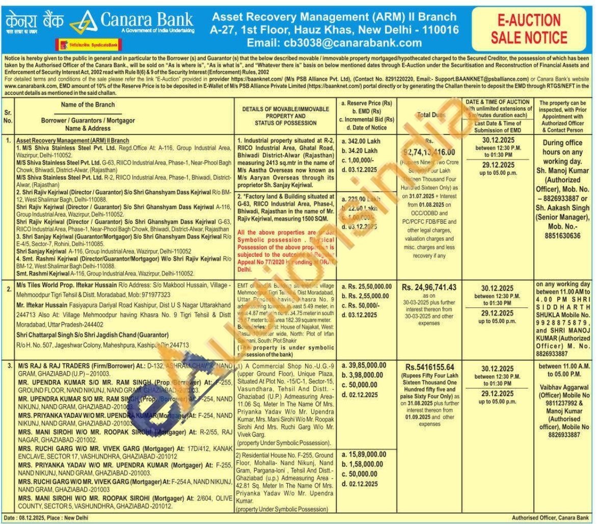 (Contact : - Vaibhav Aggarwal - Mr. 9811237992 / Manoj Kumar- Authorised officer - 8826933887)