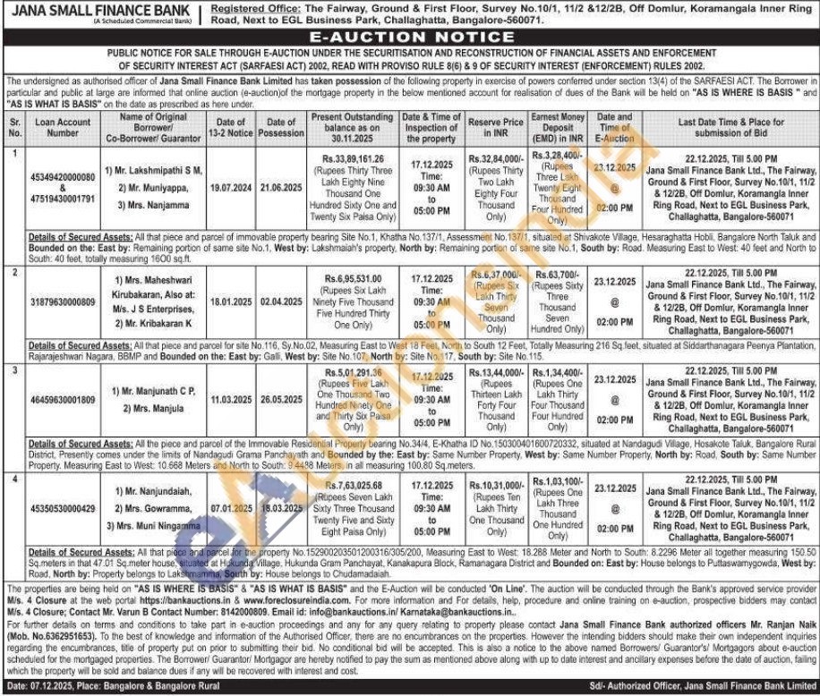 Details of Secured Assets: All that piece and parcel for site No. 116, Sy. No.02, Measuring East to West 18 Feet, North to South 12 Feet, Totally Measuring 216 Sq feet, situated at Siddarthanagara Peenya Plantation, Rajarajeshwari Nagara, BBMP and Bounded on the: East by: Galli, West by: Site No. 107, North by: Site No. 117, South by: Site No. 115