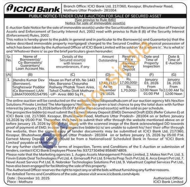 House on Part of Kh. No 1443 Min. Barsana Chauraha Railway Phatak Town Area, Tehsil Chatta Distt Mathura -UP-Area: 880 Sq Ft