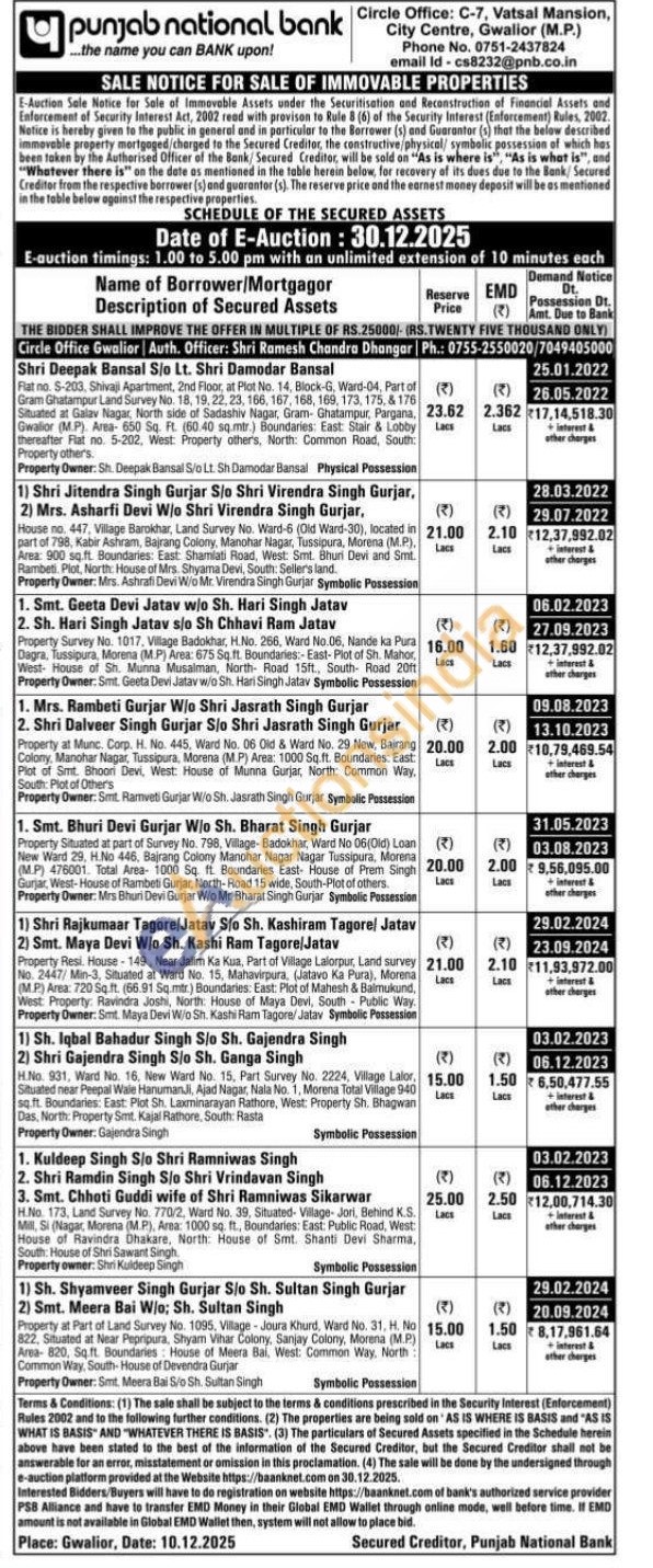 Property Resi. House - 149, Near Jalim Ka Kua, Part of Village Lalorpur, Land survey No. 2447/ Min-3, Situated at Ward No. 15, Mahavirpura, (Jatavo Ka Pura), Morena (M.P) Area: 720 Sq.ft. (66.91 Sq.mtr.) Boundaries: East: Plot of Mahesh & Balmukund, West: Property: Ravindra Joshi, North: House of Maya Devi, South Public Way. Property Owner: Smt. Maya Devi W/o Sh. Kashi Ram Tagore/Jatav Symbolic Possession