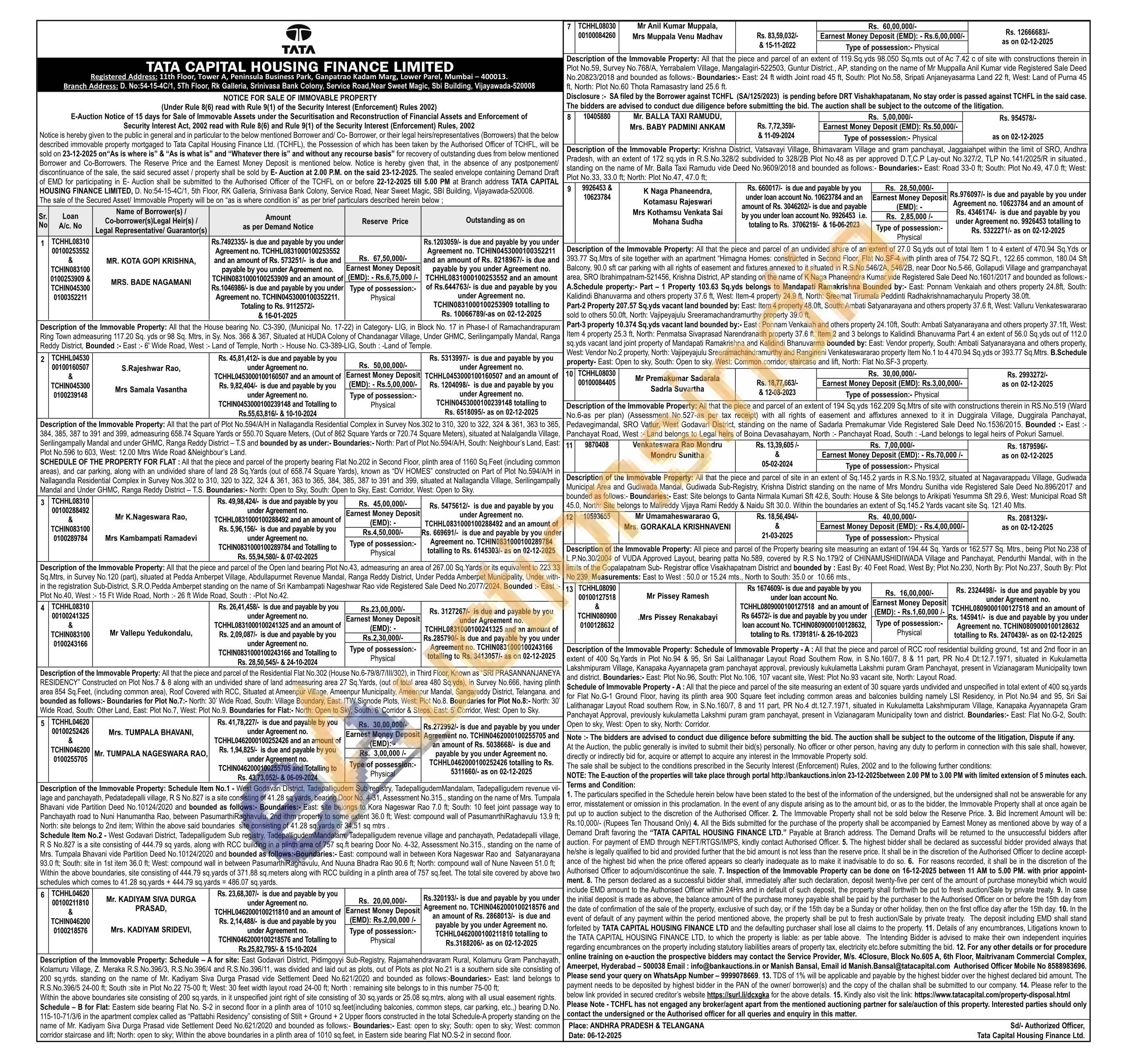 Description of the Immovable Property: Schedule A for site: East Godavari District, Pidingoyyi Sub-Registry, Rajamahendravaram Rural, Kolamuru Gram Panchayath Kolamuru Village, Z. Meraka R.S.No.396/3, R.S.No.396/4 and R.S.No.396/11, was divided and laid out as plots, out of Plots as plot No.21 is a southern side site consisting of 200 so yrds. standing on the name of Mr. Kadiyam Siva Durga Prasad vide Settlement Deed No.621/2020 and bounded as follows:-Boundaries: East land belongs to R.S.No.396/5 24-00 ft: South site in Plot No.22 75-00 ft; West: 30 feet width layout road 24-00 ft. North remaining site belongs to in this number 75-00 ft Within the above boundaries site consisting of 200 sq yards, in it unspecified joint right of site consisting of 30 sq yards or 25.08 sq.mtrs, along with all usual easement rights. Schedule-B for Flat: Eastem side bearing Flat No. S-2 in second floor in a plinth area of 1010 sq feet(including balconies, common steps, car parking, etc.,) bearing D.No. 115-10-71/3/6 in the apartment complex called as "Pattabhi Residency" consisting of Stilt + Ground + 2 Upper floors constructed in the total Schedule-A property standing on the name of Mr. Kadyam Siva Durga Prasad vide Settlement Deed No.621/2020 and bounded as follows:- Boundaries:- East: open to sky: South: open to sky: West: common corridor staircase and lift, North: open to sky: Within the above boundaries in a plinth area of 1010 sq.feet, in Eastern side bearing Flat NO.S-2 in second floor.
