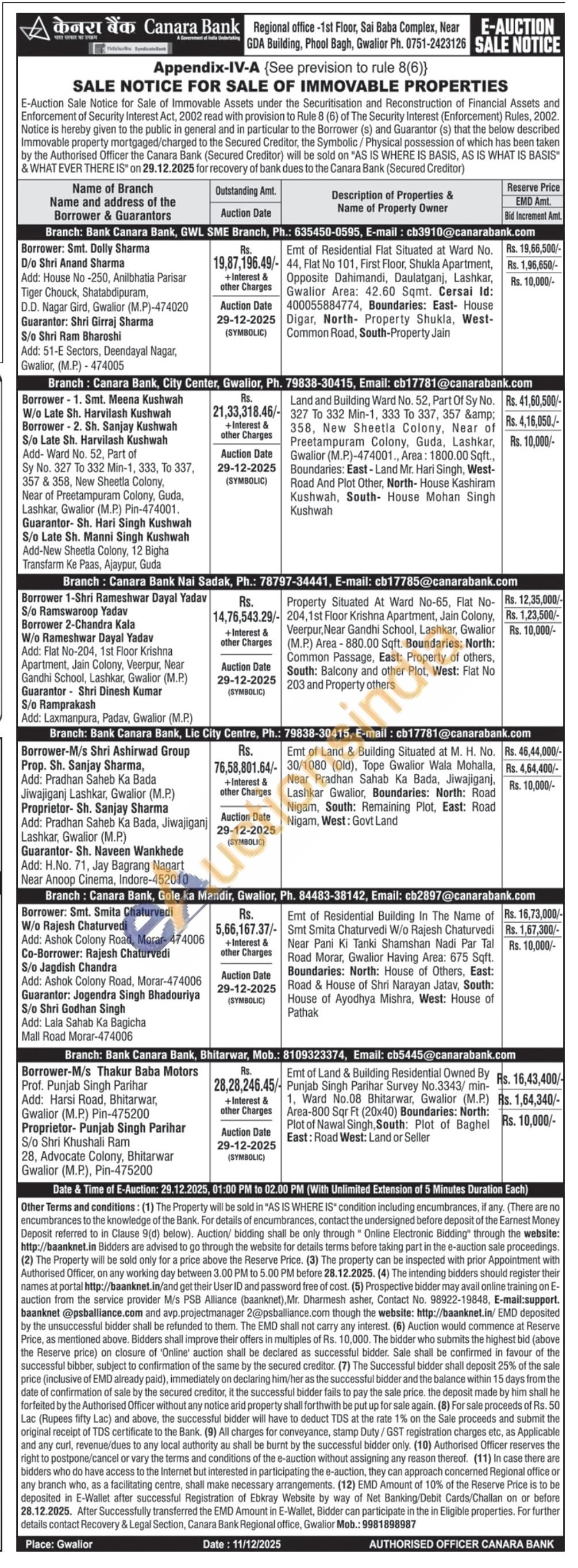 Contact Branch: Bank Canara Bank, GWL SME Branch, Ph.: 635450-0595