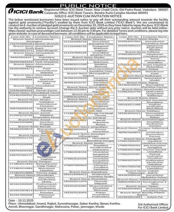 ICICI Bank Gold Auctions Auction in Ahmedabad