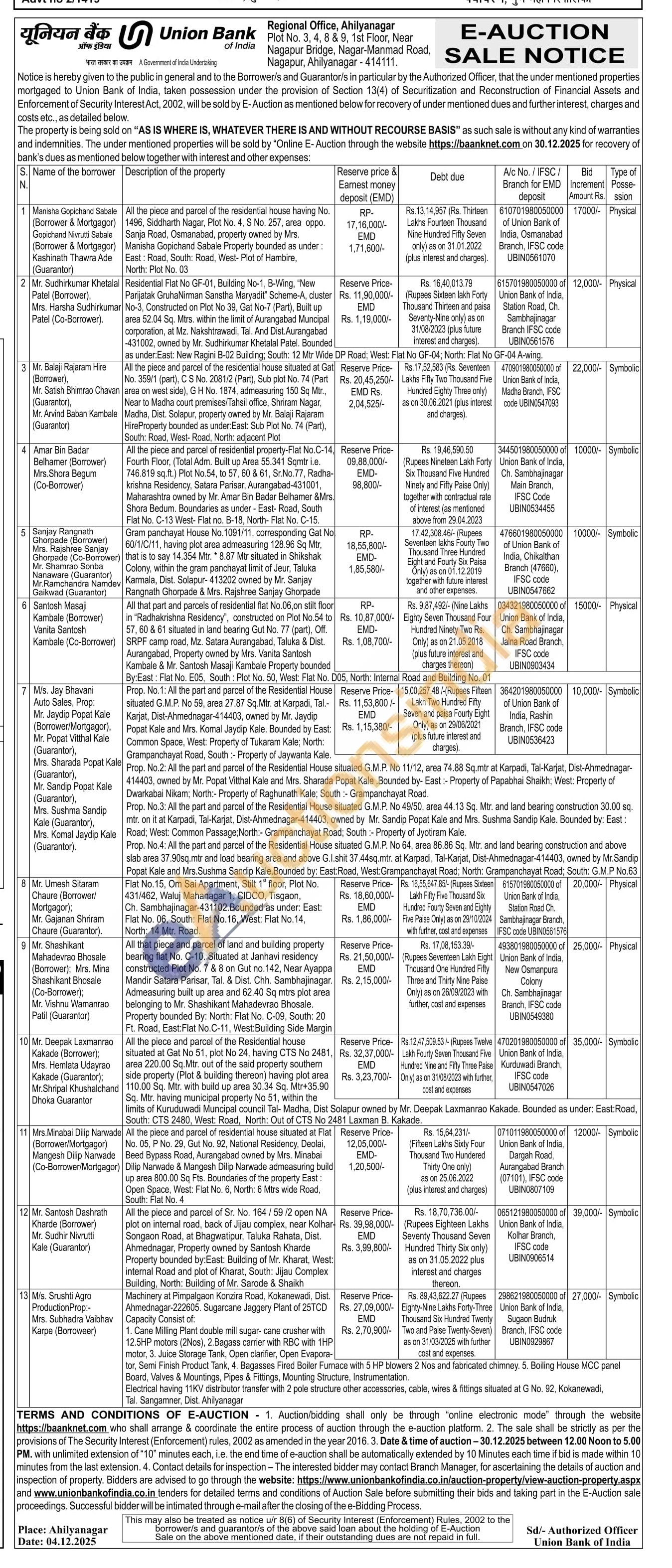 All the piece and parcel of the residential house having No. 1496, Siddharth Nagar, Plot No. 4, S No. 257, area oppo. Sanja Road, Osmanabad, property owned by Mrs. Manisha Gopichand Sabale Property bounded as under: East: Road, South: Road, West- Plot of Hambire, North: Plot No. 03