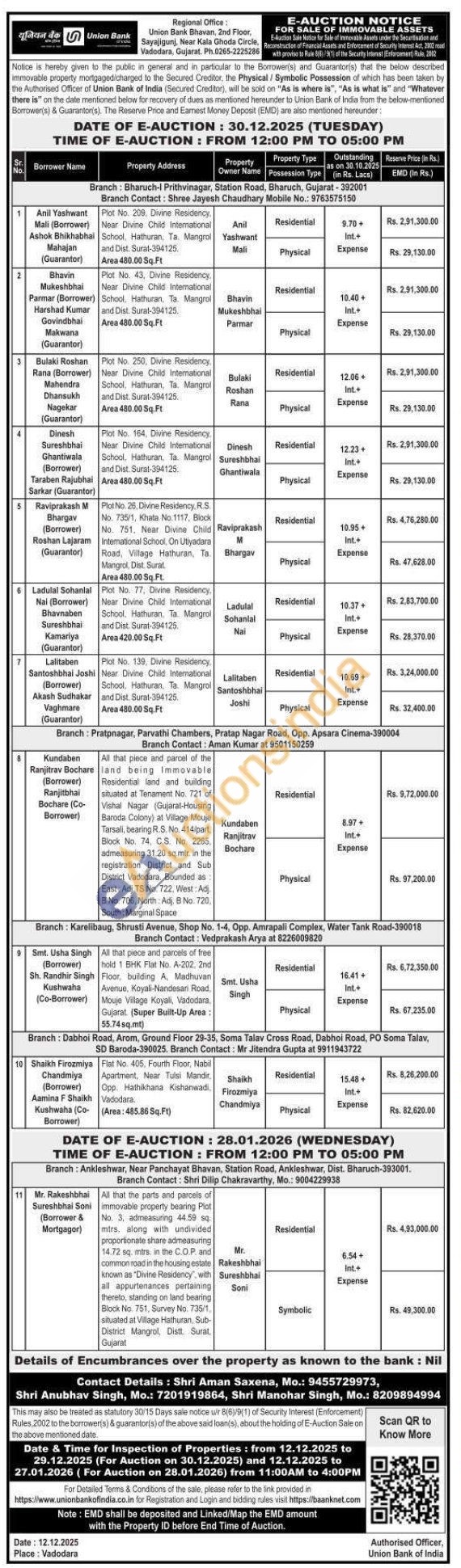 All that the parts and parcels of immovable property bearing Plot No. 3, admeasuring 44.59 sq. mtrs. along with undivided proportionate share admeasuring 14.72 sq. mtrs, in the C.O.P. and common road in the housing estate known as "Divine Residency, with all appurtenances pertaining thereto, standing on land bearing Block No. 751, Survey No. 735/1, situated at Village Hathuran, Sub-District Mangrol, Distt. Surat, Gujarat