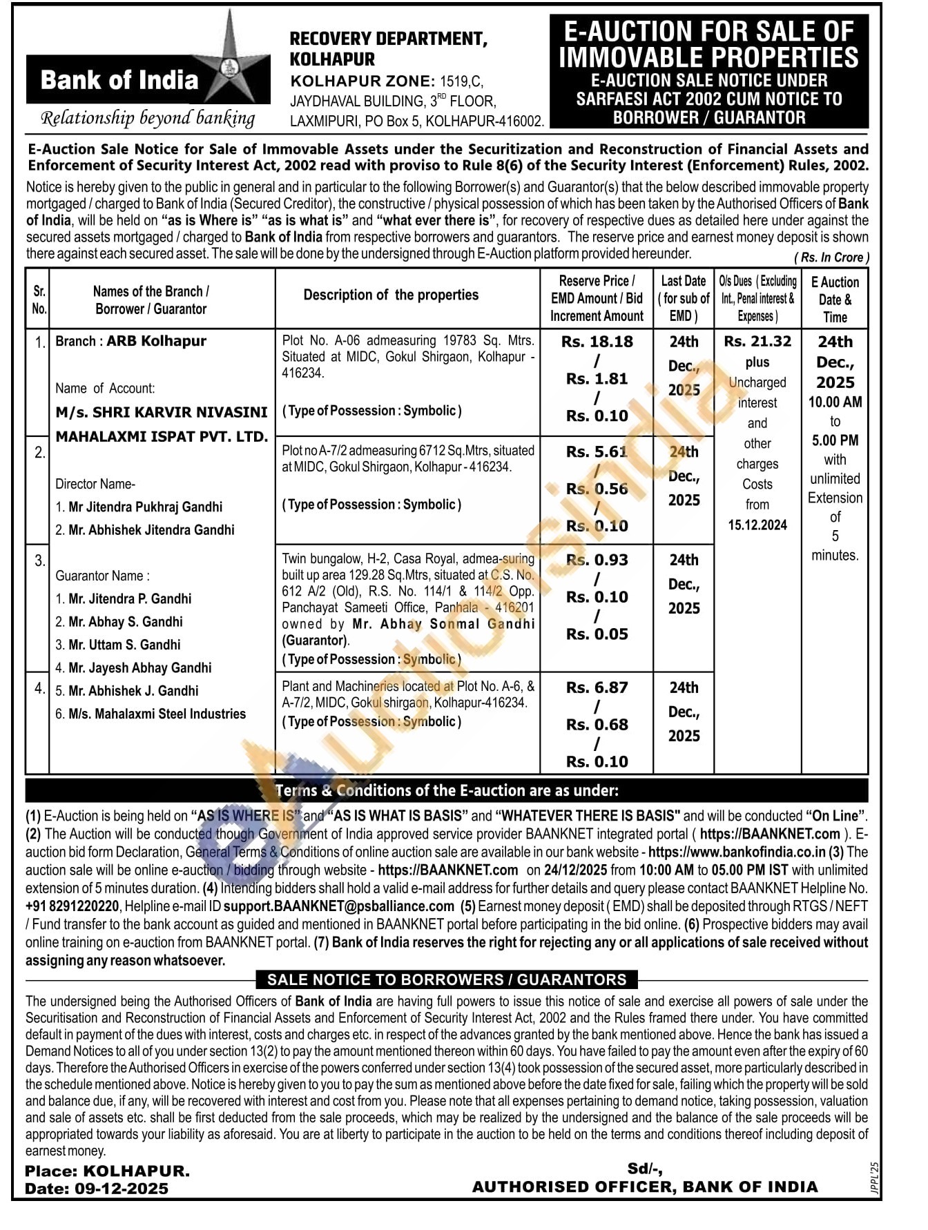 Plot no A-7/2 admeasuring 6712 Sq. Mtrs, situated at MIDC, Gokul Shirgaon, Kolhapur-416234.