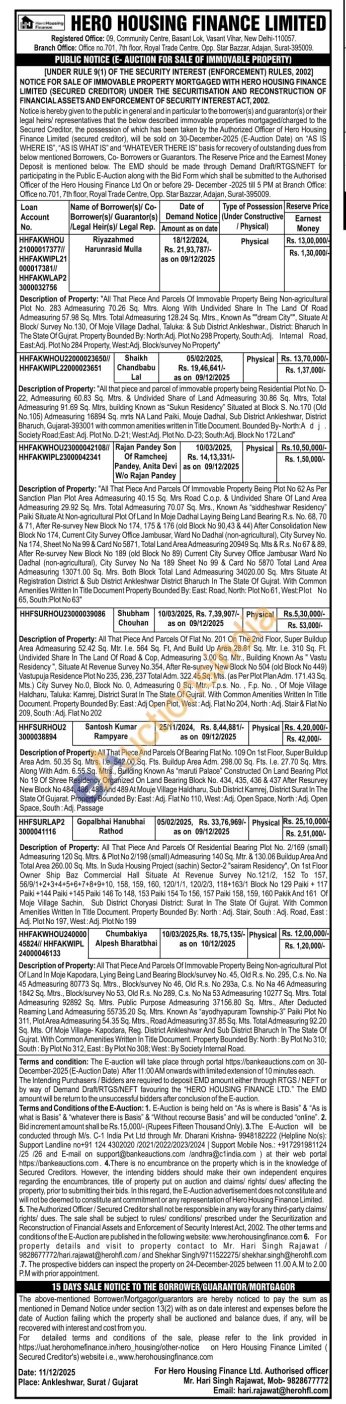 Description of Property: All That Piece And Parcels Of Immovable Property Being Non-agricultural Plot Of Land In Moje Kapodara, Lying Being Land Bearing Block/survey No. 45, Old R.s. No. 295, C.s. No. Na 45 Admeasuring 80773 Sq. Mtrs., Block/survey No 46, Old R.s. No 293a, C.s. No Na 46 Admeasuring 1842 Sq. Mtrs., Block/survey No 53, Old R.s. No 289, C.s. No Na 53 Admeasuring 10277 Sq. Mtrs. Total Admeasuring 92892 Sq. Mtrs. Public Purpose Admeasuring 37156.80 Sq. Mtrs., After Deducted Reaming Land Admeasuring 55735.20 Sq. Mtrs. Known As "ayodhyapuram Township-3" Paiki Plot No 311, Plot Area Admeasuring 54.35 Sq. Mtrs., Road Admeasuring 37.85 Sq. Mts. Total Admeasuring 92.20 Sq. Mts. Of Moje Village-Kapodara, Reg. District Ankleshwar And Sub District Bharuch In The State Of Gujrat. With Common Amenities Written In Title Document. Property Bounded By: North: By Plot No 310; South: By Plot No 312, East: By Plot No 308; West: By Society Internal Road.