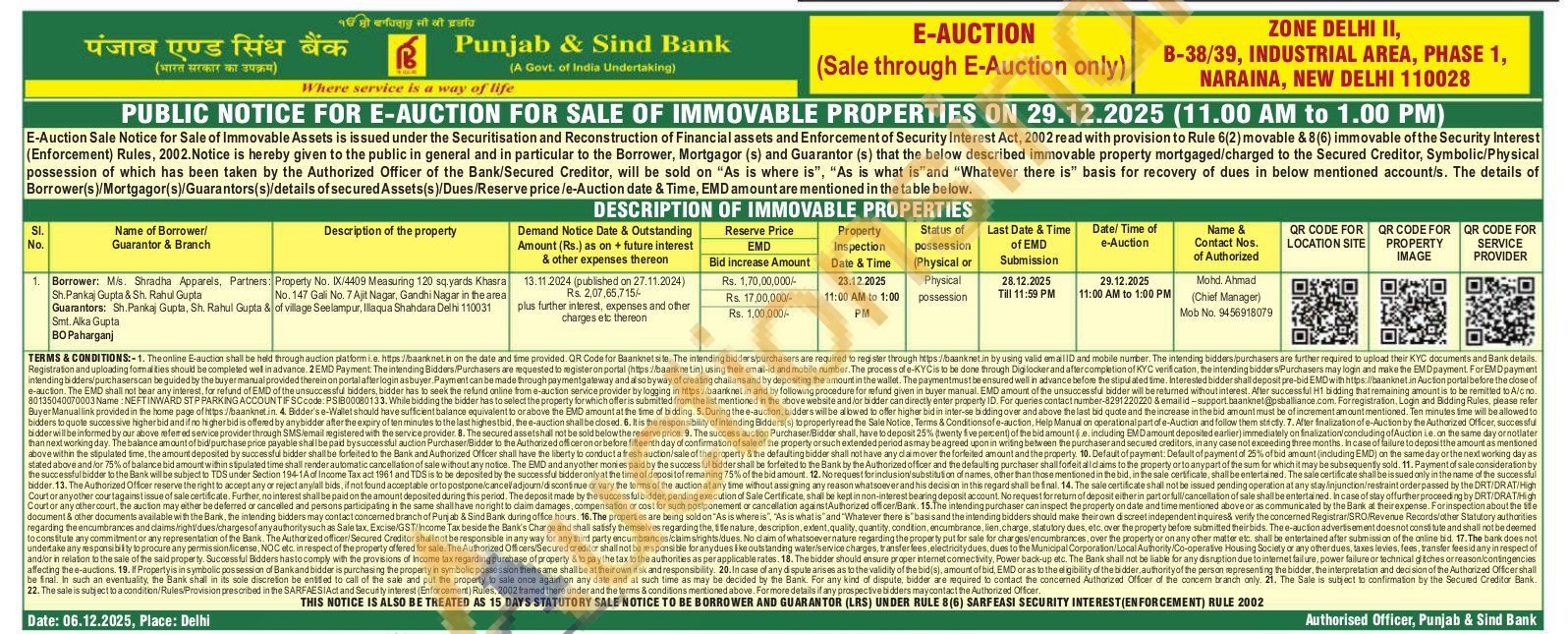 Property No. IX/4409 Measuring 120 sq.yards Khasra No. 147 Gali No. 7 Ajit Nagar, Gandhi Nagar in the area of village Seelampur, Illaqua Shahdara Delhi 110031