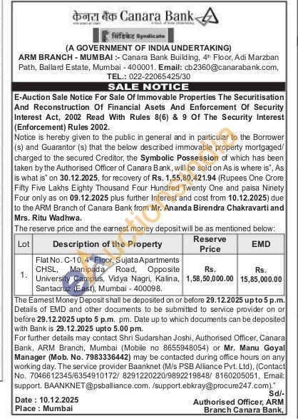 Flat No. C-10, 4th Floor, Sujata Apartments CHSL, Manipada Road, Opposite University Campus, Vidya Nagri, Kalina, Santacruz (East), Mumbai 400098