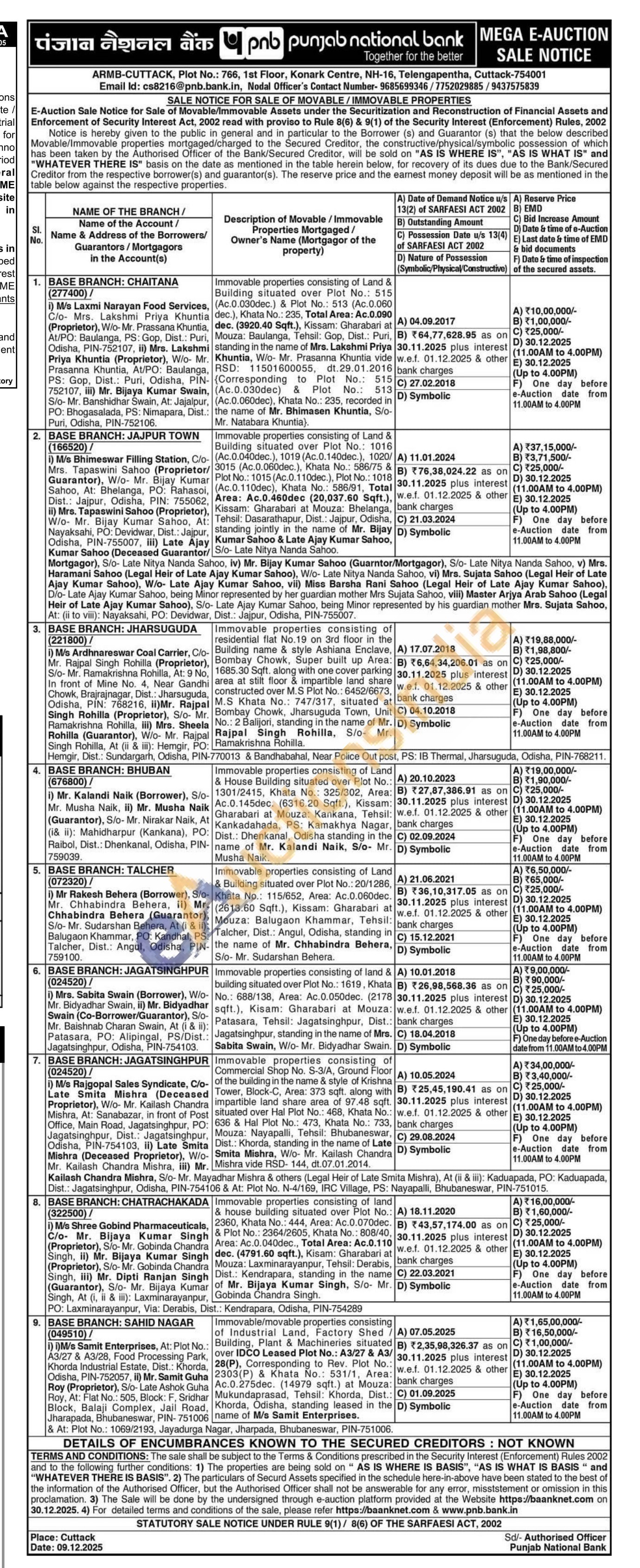 Immovable properties consisting of Land & Building situated over Plot No.: 1016 (Ac.0.040dec.), 1019 (Ac.0.140dec.), 1020/3015 (Ac.0.060dec.), Khata No.: 586/75 & Plot No.: 1015 (Ac.0.110dec.), Plot No.: 1018 (Ac.0.110dec), Khata No.: 586/91, Total Area: Ac.0.460dec (20,037.60 Sqft.), Kissam: Gharabari at Mouza: Bhelanga, Tehsil: Dasarathapur, Dist.: Jajpur, Dist.: Jajpur, Odisha, standing jointly in the name of Mr. Bijay Kumar Sahoo & Late Ajay Kumar Sahoo, S/o- Late Nitya Nanda Sahoo