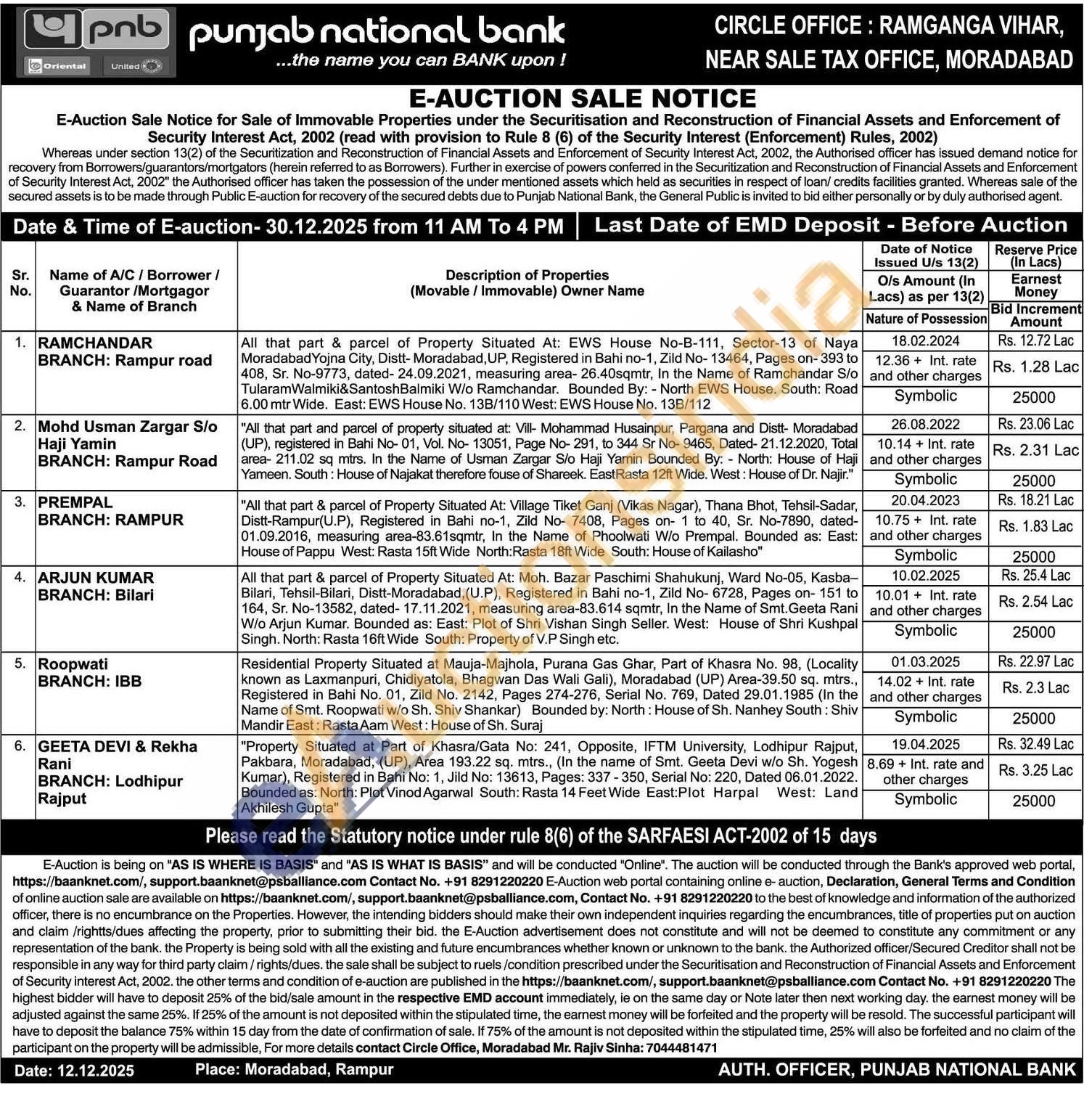 Contact Circle Office, Moradabad Mr. Rajiv Sinha: 7044481471
