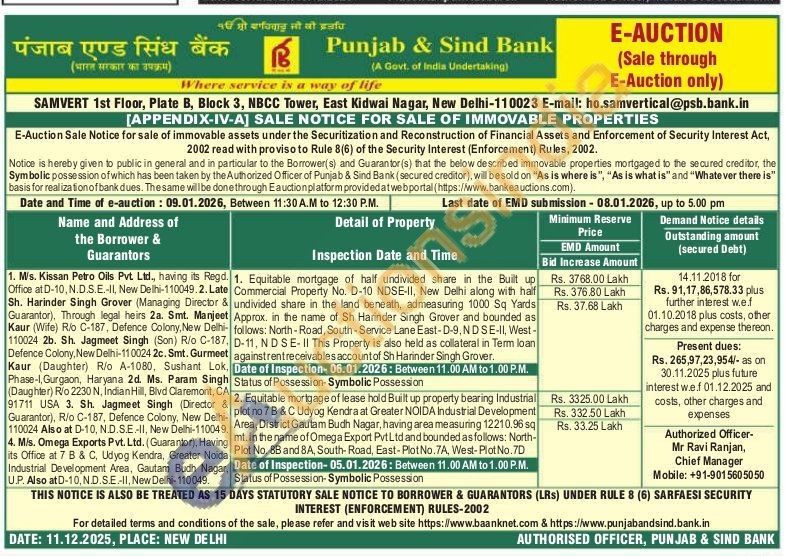 1. Equitable mortgage of half undivided share in the Built up Commercial Property No. D-10 NDSE-II, New Delhi along with half undivided share in the land beneath, admeasuring 1000 Sq Yards Approx. in the name of Sh Harinder Singh Grover and bounded as follows: North-Road, South-Service Lane East-D-9, ND SE-II, West-D-11, NDSE-II This Property is also held as collateral in Term loan againstrentreceivables account of Sh Harinder Singh Grover