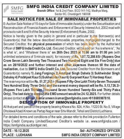 All that part and parcel of the property bearing Khasra No. 824, H.No. 11220 St. No.5, Village Dholewal Abadi Known as Partap Nagar near Shiv Mandir, Tehsil and District Ludhiana